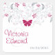 Este elegante y divertido diseño romántico presenta una rama gris azulada rosa claro y oscuro con una mariposa rosa oscuro. La fecha del boda está en la parte inferior derecha con los nombres de la novia y el novio en un color de coordinación rosa oscuro que coincide con las flores. (Este rosa también podría llamarse frambuesa, fresa, nuez de miel o fucsia). Esto funcionaría bien para regalos de boda, duchas de novia y/o favores de boda. ¡Combinaciones y posibilidades infinitas.