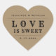 El amor es una boda dulce que favorece a pegatinas/sellos para sobres en un papel kraft de fondo.