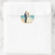 Incluye 20 pegatinas pequeños en una hoja. El ilustracion de una novia y un novio en la playa es perfecto para una decoración boda.