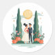 Incluye 20 pegatinas pequeños en una hoja. Deliciosos pegatinas de temática boda rodeados de vegetación y flores bajo un cielo soleado, perfectos para parejas y bodas.