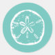 Pegatinas de casamiento en la playa de arena blanca y turquesa. Vintage Sanddoler diseño para el fiesta de casamiento de verano / linda ducha de novia. diseño de bonito. Color del fondo del personalizable. Práctico para favores de boda o como selladores de sobres.