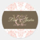 Pegatinas de bodas en monograma de Damasco Rosado