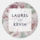 Elegantes pegatinas de manicura acuarela en tonos descoloridos y mudos de rosa y verde sabio son una forma de moda para terminar sus invitaciones a la boda, favores y más. El diseño presenta sus nombres en contraste con el azul de medianoche sobre un sobre blanco puro para un aspecto moderno. Coordina con nuestra colección de bodas en el Jardín Inglés.