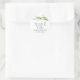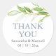 Estos stickers de boda incluyen las palabras "Gracias" establecidas en la tipografía de escritura de moda. Utilice los campos de plantilla para agregar los nombres personalizados y la fecha de boda. La parte superior está decorada con una sola fuente de vegetación. Para ver la correspondencia entre el tema del papel botánico de los bodas visite www.zazzle.com/dotellabelle Arte acuarela y diseño de Victoria Grigaliunas de Do Tell A Belle