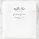 Pegatinas de bodas lúdicas con diseño divertido de mariposa. Ilustracion romántico con dos mariposas enamoradas. Diseño caprichoso con tipografía de escritura elegante. Opciones en blanco y negro o en color.