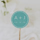 Personalice estos sellos simples con sus iniciales y fecha de boda para una forma de moda de terminar sus invitaciones, favores y más. El diseño presenta letras blancas limpias en un fondo verde azulado turquesa de verano. Diseñado para coincidir con nuestra colección de invitación a bodas de Monograma Moderno en Pool.