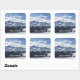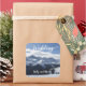 Pegatinas de bodas con el tema de las Montañas de Nieve Atmosféricas. Boda de esquiador tal vez. Escena alpina invernal.