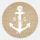 Pegatinas de bodas modernas y modernas en monograma con un diseño de ancla blanca sobre un fondo rústico impreso. Personalice a estos pegatinas con la inicial de la novia y el novio para una mirada personalizada sobre los favores y sobres de boda.