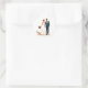 Incluye 20 pegatinas pequeños en una hoja. Elegante ilustracion de una novia y un novio tomados de la mano, perfecto para decoraciones y mensajes de boda.