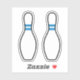 Pegatinas con dos boleras blancas con rayas azules y contornos negros.