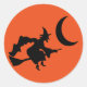 Pegatina redondo mostrado con una huella de bruja de Halloween. Personalizar este artículo o compra como está. com.