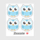 Pegatinas con un lindo búho personalizado azul. Hoja con cuatro pegatinas.