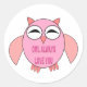 Esta hoja de pegatinas muestra un personalizado lindo de un búho rosado con ojos somnolientos, un pequeño pico y lindos pies. Hay un texto rosa brillante dentro de la panza de búho que dice: "búho siempre te quiere". Este es el regalo perfecto para mostrarle a alguien especial cuánto le amas.
