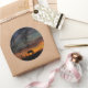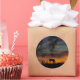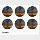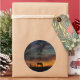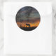 Un bonito pegatina, con caballos y robles y aves en un cielo de color suroeste.