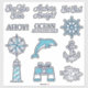 ¡Prepárate para una aventura náutica con estas Pegatinas de Cabana Sail Voyage! Son perfectas para cualquier evento con tema marítimo, con cosas lindas como delfines, anclas, faros y rosas de los vientos, además de frases divertidas como "¡Anclas al agua!" y "Nos vemos en el mar". Úsalas en recuerdos de fiesta, correo o incluso en tu álbum de recortes – ¡añadirán ese toque costero perfecto!