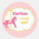 Carrusel lindo en pegatinas rosados y dorados con tu elección de textos