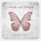 Pegatina Boda elegante y sencillo con mariposa rosa sobre un fondo gris. Este diseño es una elección única para un boda moderno. Fácil de personalizar con los detalles de su boda. Haga clic en "Personalizar" para encontrar más opciones de personalización.