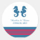 Elegantes y clásicas pegatinas Nautical Wedding con un par de caballitos de mar simples y un conjunto de rayas en azul marino oscuro y rojo. Estos pegatinas náuticos temáticos pueden personalizarse fácilmente con los detalles de su boda. Para obtener más opciones de personalización, haga clic en el botón Personalizar.