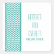 Moda y modernas pegatinas de la Boda Fronteriza Chevron con un sencillo borde de patrón de chevron en color turquesa y blanco. Este diseño elegante marcará el tono de una boda elegante. Fácil de personalizar, simplemente agregue los detalles de su boda en los campos de texto proporcionados. Haga clic en "Personalizar" para encontrar más opciones de personalización.