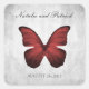 Pegatina Boda elegante y sencillo con mariposa roja sobre un fondo gris. Este diseño es una elección única para un boda moderno. Fácil de personalizar con los detalles de su boda. Haga clic en "Personalizar" para encontrar más opciones de personalización.