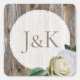 Pegatinas de casamiento de rosa blanca de madera rústica