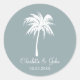 Dusty Blue Tropical Palm Tree Destino Boda pegatinas y bodas en la playa favorecen las etiquetas.