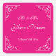 Palabras adhesivas de boda rosadas y elegantes de frambuesa. Diseño elegante con una decoración de esquina rápida. Plantilla de tipografía de guión elegante. Personaliza con el apellido del Sr. y la Sra. Las toallas de papel personalizado están disponibles en tamaño pequeño y grande.