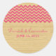 Modernos y modernos stickers Rustic Chevron Wedding con un fondo de textura de carpintería impreso en arte digital y un patrón de zag zig de rayas de chevron magenta. Este diseño es perfecto para una boda rústica y elegante. Fácil de personalizar, simplemente añada los detalles de su boda. Haga clic en "Personalizar" para encontrar más opciones de personalización.