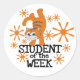 Un naranja de diseño de gatos Estudiante de la Semana pegatinas.