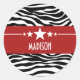 Modernos y modernos Pegatinas Sassy Star Zebra con un fondo de moda de cebra en blanco y negro y un atrevido borde rojo adornado con un divertido motivo estrella. Este diseño ondulado puede ser personalizado con el texto personalizado de su elección. Haga clic en "Personalizar" para encontrar más opciones de personalización.