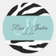 Pegatinas de boda de monograma cebra (selladores de sobre), tonos de acento azul. Ideal para el uso diario. Personalizable completo. Las fuentes y los colores de fondo se pueden cambiar fácilmente. Copyright © 2009 PixDezines.com y PixDezines en zazzle.com