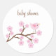 Pegatinas dulces con una rama de flores de cerezo y un pájaro rosado.