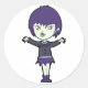 Este diseño es un chica vampiro. El chica está vestido de púrpura y parece un vampiro. Este diseño de chica vampiro se ve genial en este Pegatina