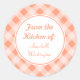 Estos pegatinas de cocina personalizados están decorados con un patrón de gingham de durazno. Cambie el nombre para personalizar estos pegatinas. Utilice estos elegantes pegatinas para regalos, horneado, etc...El diseño es de arte original.