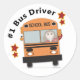 Nuestros Pegatinas de conductores de bus #1 tienen un autobús escolar con una mujer chofer y estrellas alrededor del autobús.