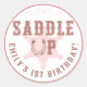 ¡Añada un toque occidental al cumpleaños de su pequeña vaquera con estos pegatinas de la placa del sheriff rosa Saddle Up! Perfecto para sellar bolsos de favores, decorar tazas de fiesta o personalizar sobres para un primer cumpleaños, rodeo o fiesta de pony de temática rural.