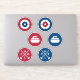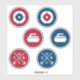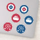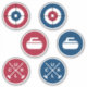 Pegatinas de vinilo con rocas curvadas, escobas y casas en rojo y azul. Perfecto para curlers y abanicos de curling.