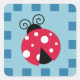 Pegatina de cuadros azules y lindos, una mariquita roja y negra en el centro