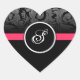 Pegatinas de Damasco Cardíaco de Monograma Rosa y