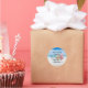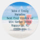 Sellos de sobre de dirección de devolución con imagen de bebidas en la playa. A cualquiera que viva un estilo de vida informal y junto al mar le encantará esta pegatina. Cócteles helados se sientan en una playa soleada con agua azul tropical en la distancia. Esta es la imagen de fondo para su nombre y dirección que se imprime en estilo manuscrito grueso. Otras formas de pegatinas pueden funcionar dependiendo de su texto. No dejes que ninguna palabra se acerque al borde.
