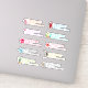 Pegatinas de dirección de regreso tropicales con forma de texto e imágenes. Cada hoja contiene diez imágenes tropicales con nombre y dirección. Utilice la plantilla para agregar su dirección una vez y aparecerá en varios colores junto a imágenes de conchas marinas, flamenco, flores tropicales, estrellas de mar, piñas, dólar de arena y tablas de surf. El texto impreso es fácil de leer en estas etiquetas imaginativas y únicas. Elija contorno blanco o transparente. Elija el tamaño de hoja que necesite para hacer etiquetas de tamaños personalizados.