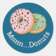 Pegatinas de diseño de donuts con texto de personalizable y color de fondo.