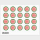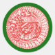 Dibujo de una mandala, en un diseño abstracto de Navidades, en rojo y blanco con Feliz Navidad, impreso en pegatinas, con un borde verde. Puede personalizar con un color de borde diferente. Cañones de golosinas y notas musicales rodean la parte exterior. También encontrarás llaves de piano, morcos, tambores y cuerdas de guitarra en la menagerie de instrumentos musicales.