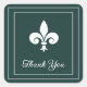 Elegante y simple Boda gracias pegatina que presenta una flor de lis contra un fondo verde esmeralda. Este diseño es una elección única para un boda moderno. Fácil de personalizar con los detalles de su boda. Haga clic en "Personalizar" para encontrar más opciones de personalización.