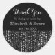 Etiquetas de boda en negro y plata con un aspecto moderno y elegante. El diseño incluye un patrón plateado de chispas redondas en la parte inferior del pegatina. Pulse el botón personalizar para realizar los cambios que necesite, aumentar el tamaño del texto, cambiar el estilo del texto o el color de fondo para que coincida con su decoración boda.