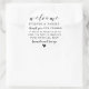 Pegatinas de favores de bodas personalizadas gracias. La caligrafía en blanco y negro es moderna y elegante.