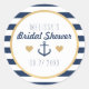 Ducha nupcial Pegatinas de la temática náutica Favor con ancla y acento cardíaco - fondo de rayas blancas y azules con un falso borde dorado - Perfecto para duchas nupales, compromisos, bodas y otros eventos!