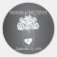 Estilo de pizarra de moda con tipografía escrita a mano, personalizada con los nombres de la novia y del novio y fecha de boda. El tarro de bonito de masón con flores de hidrangea blancas completas se acentúa con un corazón que contiene las iniciales de las parejas. Coordina maravillosamente con todos nuestros productos e invitaciones de tipo pizarra.