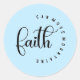 Se muestra un gran pegatina redondo con una fe que puede mover la huella de las montañas. Color Light Blue Personalizar este artículo o compra tal como está. Imagen con licencia