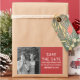 Pegatinas de fecha de guardado de foto en código binario divertidas y geek en rojo con un simple fondo de código binario y una plantilla de foto. Este diseño original es perfecto para la pareja friki que anuncia su boda. Fáciles de personalizar, simplemente reemplace la foto con una propia y agregue los detalles de su boda. Haga clic en "Personalizar" para encontrar más opciones de personalización.
